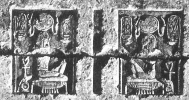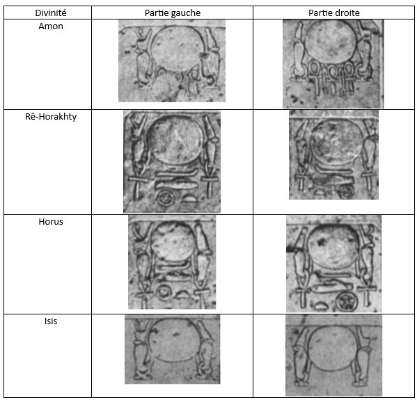 juxtaposition des deux montants avait toujours embarrassé les sculpteurs égyptiens. Cette solution nouvelle est assez élégante;