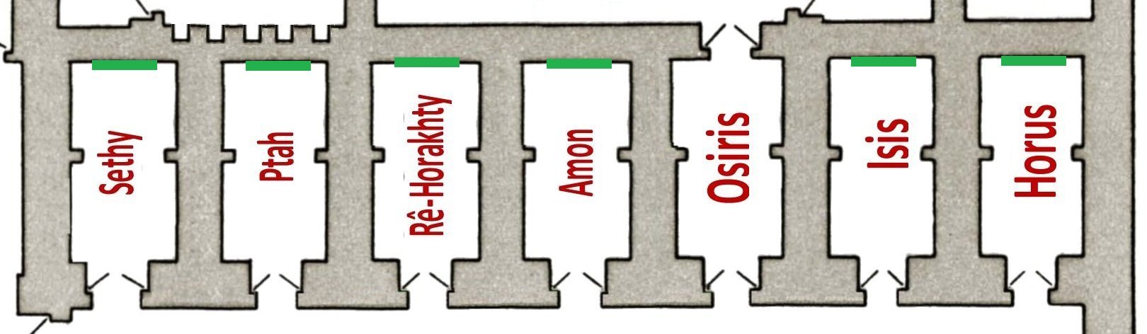 La chapelle d'Osiris n'en présente pas, car il y a une porte qui mène au complexe Osirien, donc un passage dans le monde osirien.